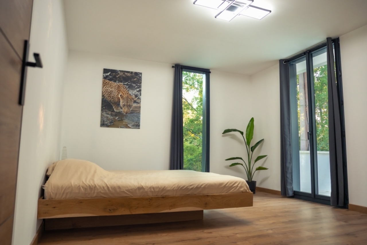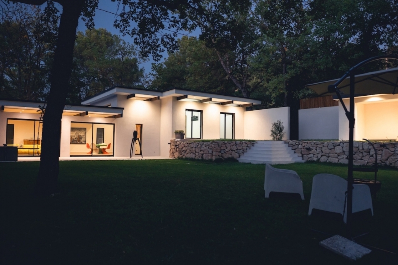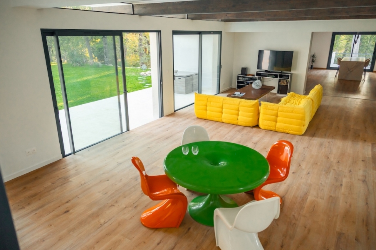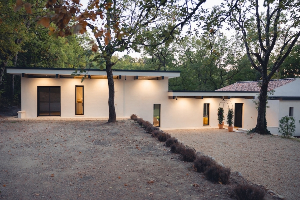 Située dans une commune prisée à proximité immédiate de Puyricard et du Château La Coste, cette propriété bénéficie d’un emplacement privilégié, à courte distance d’Aix-en-Provence, de sa gare TGV et de l’aéroport Marseille-Provence. L’environnement, particulièrement recherché, séduit par la qualité de ses paysages mêlant forêts de pins, chênes majestueux et vignes aux teintes changeantes, aux portes du Luberon. Implantée sur un terrain en restanques planes de belles dimensions, la maison s’inscrit au cœur d’une nature préservée, agrémentée d’une vaste pelouse et offrant un fort potentiel d’aménagement, notamment pour l’intégration d’un bassin. L’habitation d’origine, datant des années 1970, a fait l’objet d’une remarquable transformation architecturale qui a considérablement augmenté les volumes tout en respectant la topographie du site. Le dialogue entre lignes contemporaines et éléments traditionnels confère à l’ensemble une élégance maîtrisée et une atmosphère apaisante. Les espaces de vie, largement ouverts sur l’extérieur par de généreuses baies vitrées, bénéficient d’une luminosité optimale et de vues dégagées sur la forêt environnante. Les volumes intérieurs, à la fois vastes et fonctionnels, s’organisent autour d’une suite parentale et d’un espace nuit confortable avec 3 autres chambres. Enfin, une dépendance indépendante et un projet de piscine viennent parfaire ce bien d’exception, conjuguant harmonieusement architecture, nature et art de vivre provençal.